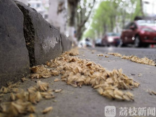 一夜之间,气温骤降十几度。昨夜今晨(4月4日),江苏句容各地迎来大风降温天气,强劲的大风使树枝来回摇摆,大量的梧桐树飞絮纷纷飘落,迷得行人睁不开眼睛,地上铺了厚厚的梧桐絮。