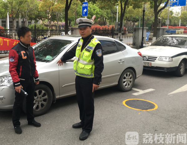 今天(4月4日)上午,南京交警四大队民警在黄山路巡逻时发现一辆小车在临近路口时忽然变道,于是上前对其进行检查。在交警已经站在驾驶室门前,要求其出示驾驶证、行驶证时,该车司机始终拒绝摇下车窗,驾驶人不愿意熄火下车配合工作。半分钟后,前方红灯转绿,该车忽然打了一把方向后踩油门闯过路口,从黄山路嘉陵江街路口左转往西开去。