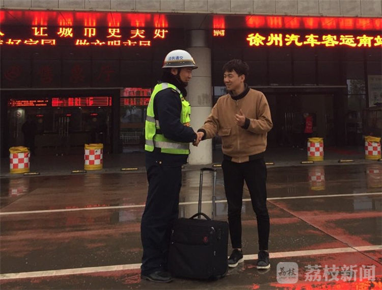 4月5日18时,连徐支队执法人员刚结束了一天的道路巡查工作,准备驾车返回驻地,途经G30连霍高速公路徐州收费站时出口匝道,发现一位衣着单薄的小伙子拉着行李箱正疲惫不堪地走着。执法人员立即停车,看到小魏在寒风细雨中冻得瑟瑟发抖,执法人员立即把他请到"高速雷锋车"上取暖,并了解情况。原来该男子叫魏乐毅,从郑州来徐州县区出差,上车前司机承诺会送他下高速,谁知快到徐州时却遭遇了强行甩客。