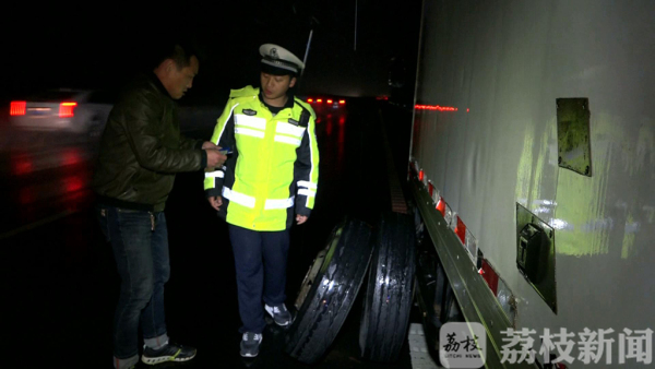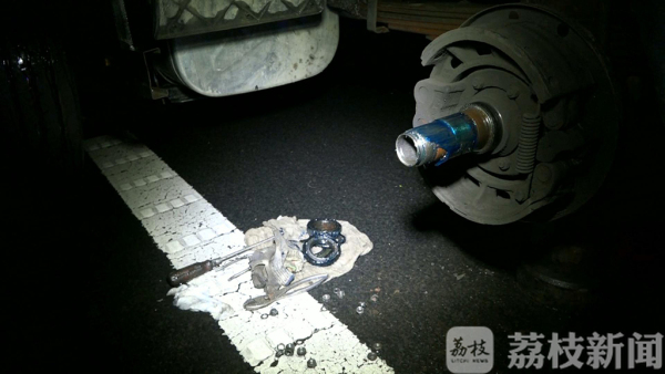 发现货车停在应急车道里,巡逻民警许尧赶忙将警车停在货车的后方,下车询问货车驾驶员是什么情况。货车驾驶员告诉许尧警官,车辆在行驶过程中,突然感觉到有异常的响声,并感觉到路面好像不平整,有颠簸的感觉时,就赶忙将车辆从行车道里滑行到应急车道里。下车检查时发现,车辆左后轮轴上的螺丝全部断裂脱落,如果不是发现及时,后果将不堪想像。