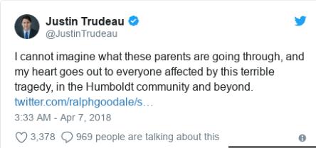 在推特上,加拿大总理贾斯汀特鲁多写道:“我无法想象这些父母正在经历什么。”