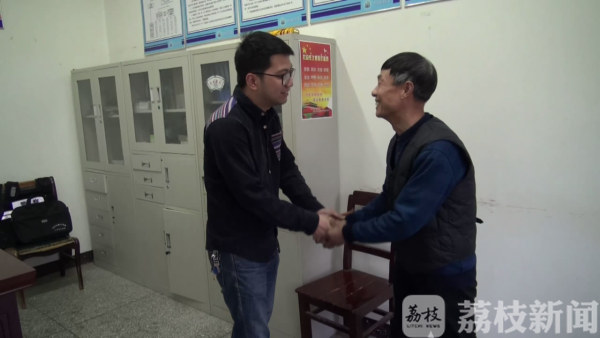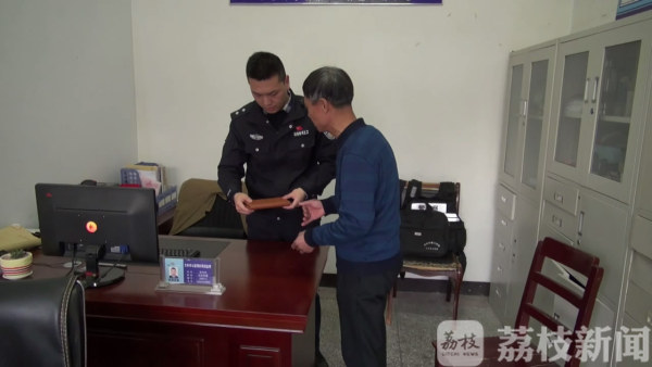 民警金伟杰当着失主陈晨的面,将杨相存捡到的钱包和13500元现金如数归还失主陈晨,陈晨接过钱包和银行卡感激不已,当场掏出一叠钱作为酬金感谢杨相存,却被杨相存婉言谢绝。