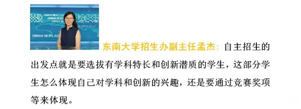 清华大学招生办主任刘震介绍:“因为有学科特长的不一定仅仅在比赛中表现出来,他有可能通过其他一些形式表现,这样给更多的学生更多的机会。”