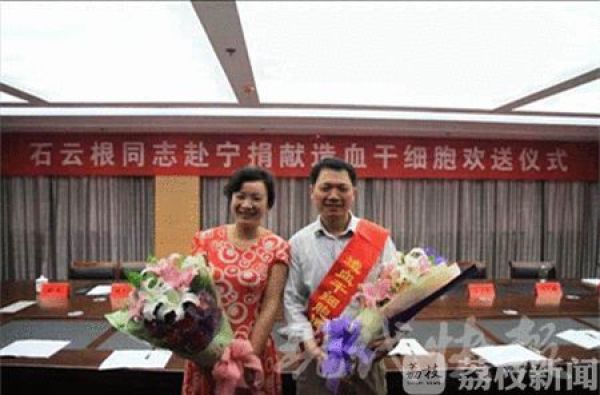 2013年底,妻子张冬梅接到了和一名28岁的天津白血病患者造血干细胞配型成功的电话,夫妻俩商议后没有犹豫。从泰州来到南京,从家里来到病房,整个捐献的过程,一旁陪同的丈夫石云根一刻也没有离开,他也被妻子被打动了。 妻子捐献完,丈夫石云根也报名成为了一名捐献造血干细胞志愿者。