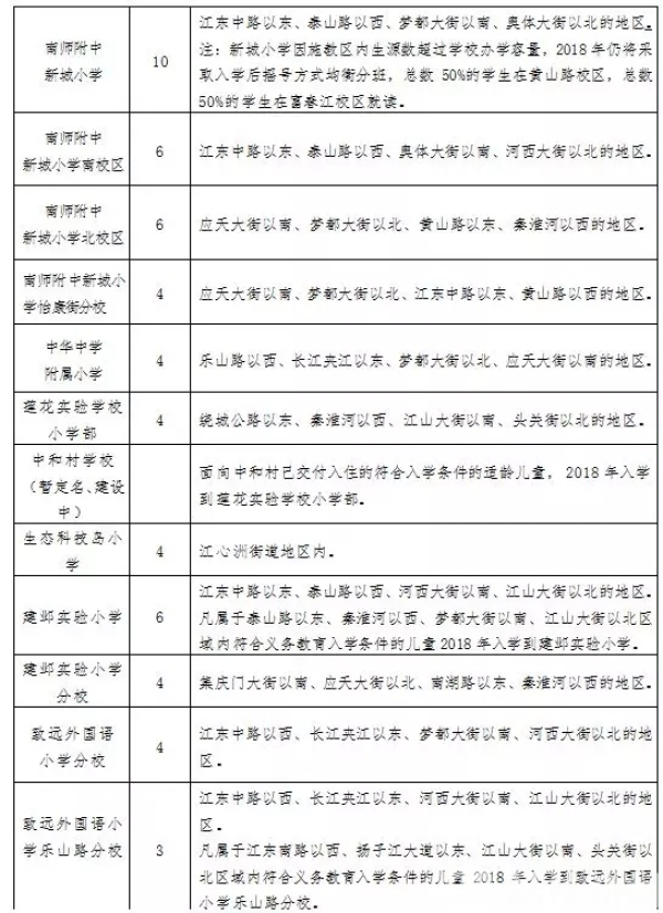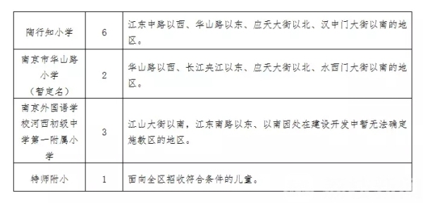 今年9月,随着附近的楼盘纷纷竣工,积善小学将收回校舍,并更名为华山路小学,在施教区内进行招生。此外,位于建邺区的南外河西初中附小将改名为南外河西初中第一附小。新城小学因施教区内生源数超过学校办学容量,2018年仍将采取入学后摇号方式均衡分班:50%的学生在黄山路校区,其余学生在富春江校区就读。为了应对施教区内适龄儿童人数的变化,在严控班级人数的前提下,陶行知小学等几所学校增加了班额。