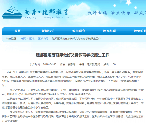 各区《方案》要求,辖区内所有公办、民办学校均要严格落实南京市义务教育招生“六不”原则,即不得进行违规宣传、不得开展选拔性测试、不得以各类竞赛或证书作为入学参考、不得分设快慢班、重点班或实验班、不得提前签约录取学生、不得收取捐资助学款或其他费用。