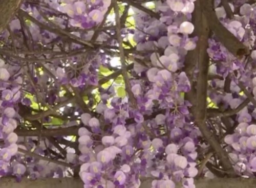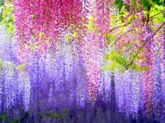 一簇簇紫色的小花簇拥着挂在枝头,看起来像是紫色的瀑布。