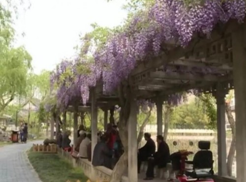 这是唐代诗人李白赞美紫藤的诗句。暮春时节,淮安市清晏园里一株有着150多年历史的紫藤悄然绽放,把公园的一角妆扮成如梦似幻的世界,引来了许多游客驻足观赏。