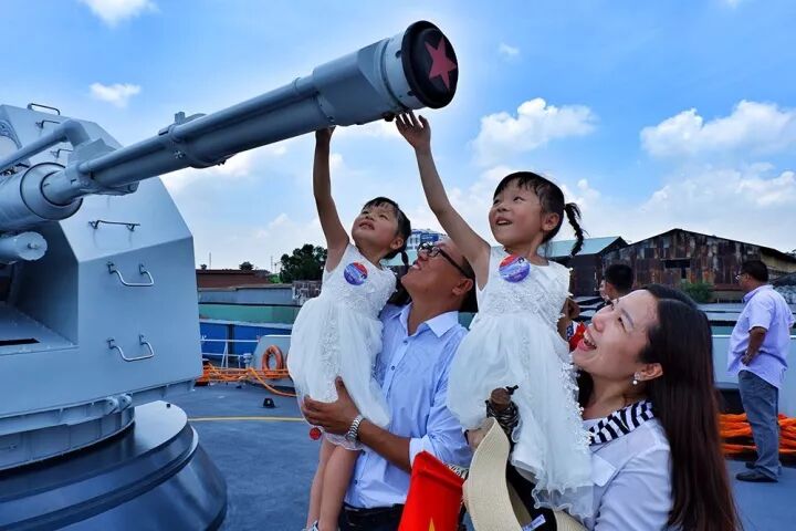 不管是舰艇举办甲板招待会,还是舰艇开放日民众上舰参观,飞行甲板都是必到之处,这里不知道留下过多少合影,搭建起多少友谊的小桥,碰撞出多少思想的火花……
