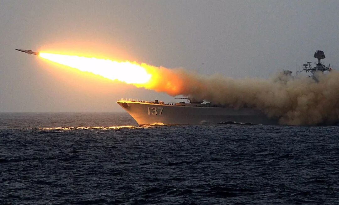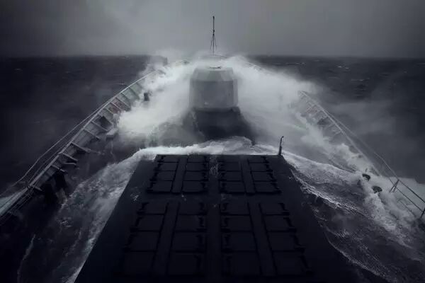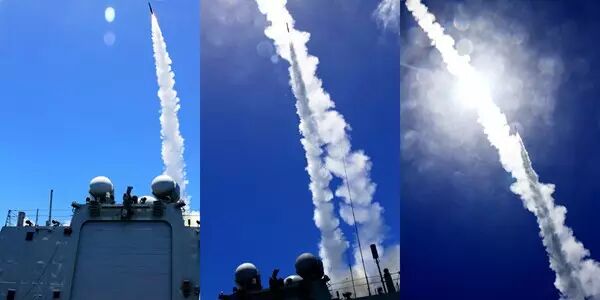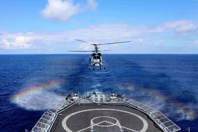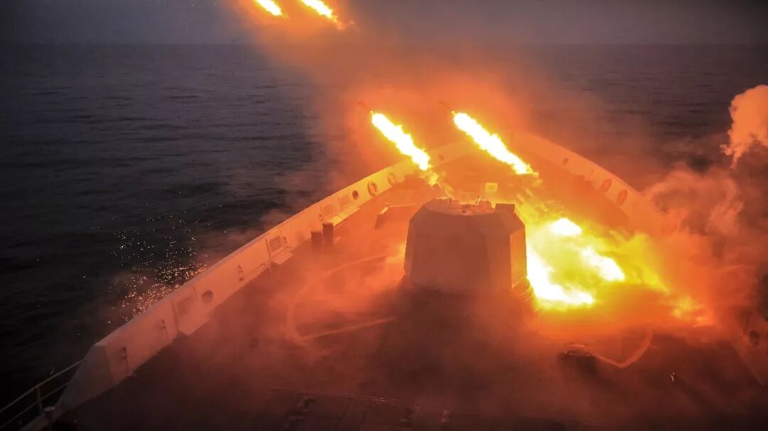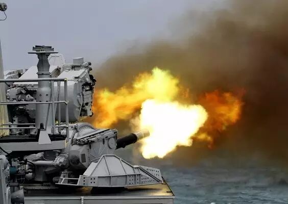 深弹齐射主炮响,火蛇吞吐两舷旁。