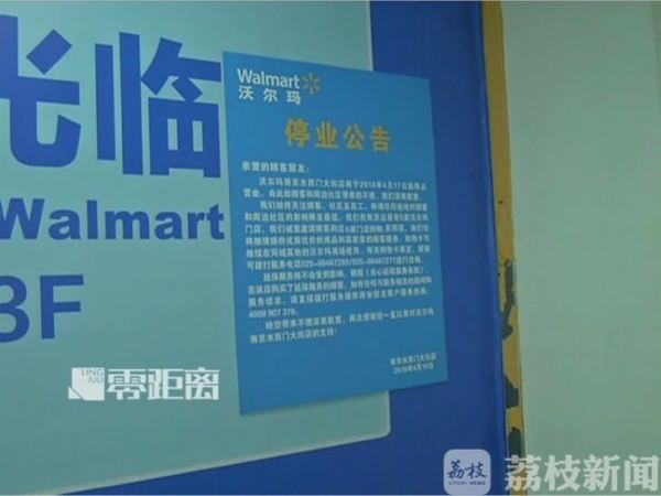 据市民反映,南京水西门大街的沃尔玛超市已在4月10号晚贴出了停业公告,持购物卡的市民可以在南京的其他沃尔玛门店继续使用,整个商场将在4月17号整体停止营业。
