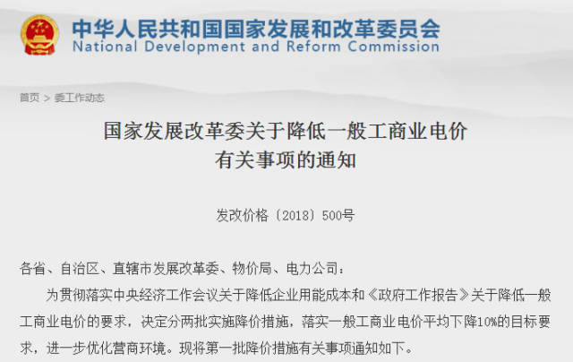 第一批降价措施全部用于降低一般工商业电价,自2018年4月1日起执行。