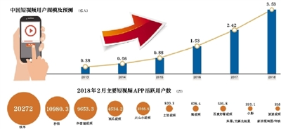 艾媒数据显示,2017年中国短视频用户规模为2.42亿人,预计2018年将达3.53亿人。