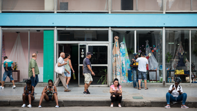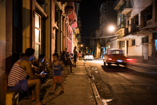 在哈瓦那,互联网的出现也不过是近几年的事情,虽然可以在有限的几个公共地方,通过WIFI有限的接入网络,但对于缺乏夜生活的当地人而言,这也无疑是打开了新世界的大门。住在靠近市中心地区的当地人应该算收入相对较多的人群,不少人已经拥有了自己的智能型电话,晚上吃过晚饭,便带着小板凳到楼下可以接入wifi的地方肩并肩坐成一排,wifi的信号不算太好,但凡能挤进去人的地方都被坐满。路过时候有特别留意,大多数人选择观看不同的视频,内容以娱乐节目为主,具体是什么就不得而知。还有很大一部分人,尚且没有能力购买智能手机,当地人平均收入大约人民币500元左右,买一部上千元的手机实在是不小的负担,与外界的联系只能靠路边的公用电话亭来解决,用得太频繁,按键都被磨损的看不出数字,反观国内,曾经随处可见的公用电话亭,因手机的普及而早就消失殆尽。