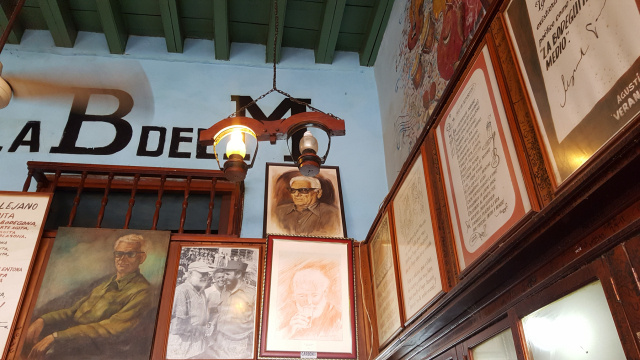 “五分钱小酒馆”(La Bodeguita del Medio)是每一个途径哈瓦那的旅人必经之处,海明威曾常在此逗留,点一杯Mojito,潜心于文学的创作。随着海明威的名声鹊起,小酒馆也沾上的好运,借着名气成为哈瓦那最出名的旅游景点,同样知名的,还有这里的Mojito。和其他类似的小酒馆相比,五分钱小酒馆生意的兴隆实在令人眼红,所有团队游客的行程里都会到这里拍照留念,再点上一杯Mojito一饮而尽。虽然名为“五分钱“,但这里的Mojito确实是全哈瓦那最贵之一,通常酒吧一标准杯不过1.5个CUC,而这里一小杯就要5个CUC,折算下来要贵上3倍左右,不过这里的Mojito也是一行十几杯下来最好喝的一家,值与不值,因人而异。