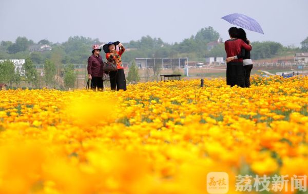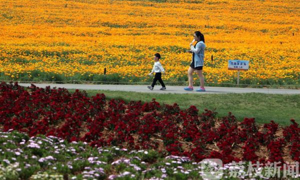 昨天(27日),当记者走进这片花海,只见一朵朵形如小伞的小花,淡黄色、橙色、奶油色在阳光下摇曳着曼妙的身姿,满目金黄色的花儿接连成片,铺在地上,形成一片壮观的花海。花丛间,蜂蝶飞舞,石径上,游人漫步。演绎出一幅迷人的画卷。一位来自镇江的游客告诉记者:她们开车从这边路过时,一下子就被这一大片金黄色的花儿迷住了,于是下车过来看看。“这边空气也好,环境也好,还有这么多花,这些花我们平时见的少,也不认识,看了之后也增长了见识”。