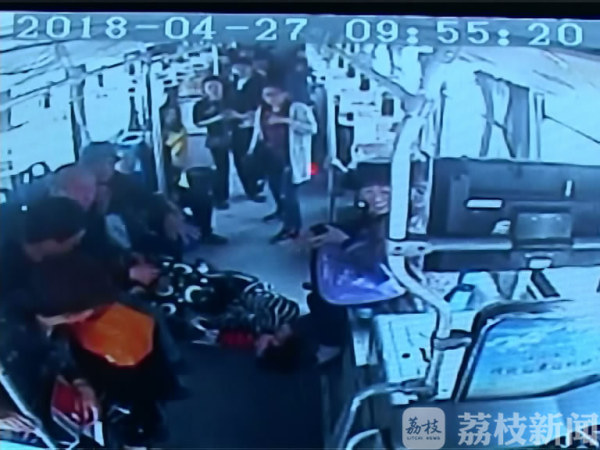 公交车监控视频显示,当时这辆31路公交车,行驶到丹凤街路口时,一名坐在位置上的约莫20多岁的女子突然倒地,昏迷不醒,车上的乘客急忙向公交司机卢建祥求助。卢建祥看女子脸色发白,嘴唇发紫,就用手掐她的人中,女子有一点缓缓地苏醒。