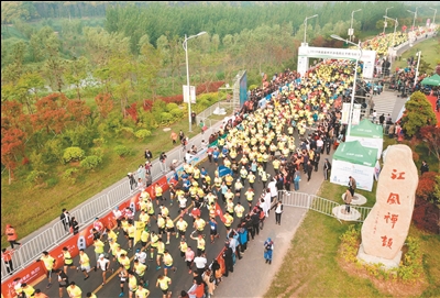 4月29日,以“乐跑开沙岛,生活更美好”为主题的跨江半程马拉松在开沙岛省级旅游度假区开跑。来自国内外的近5000名路跑爱好者参加了半程和迷你两个组别的比赛,南通籍奥运冠军陈玘和青年女歌手虞霞到现场助阵并领跑。