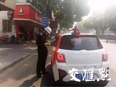 在苏州常熟,开车人贺先生因在在车顶放了一个蜘蛛侠,4月18日上午行驶至常熟虞新线时,正好被巡逻的交警发现,最终受到记2分、罚款50元的处罚。