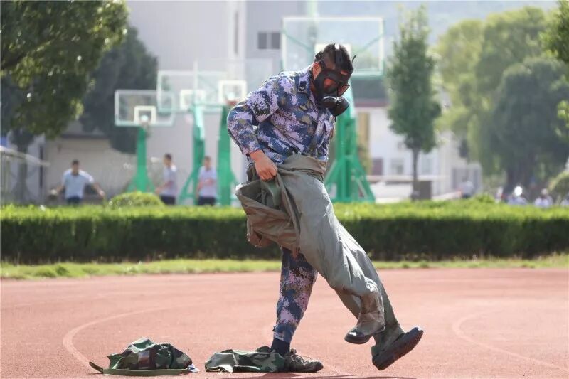 “防护”一声令下,计时器在指挥员手中飞速的跳动着,防化兵快速有序地进行防毒衣穿戴,原本笨重的防毒衣在他们手中显得那样的轻盈,“15秒25秒35秒45秒...”不到一分钟时间,他们的身影已经出现在50米跑道的另一端。在战争中每一秒都是致命的时间,防毒衣穿戴是重要的军事科目,防化兵的每一秒钟都影响着个人生命安全和作战的胜负。