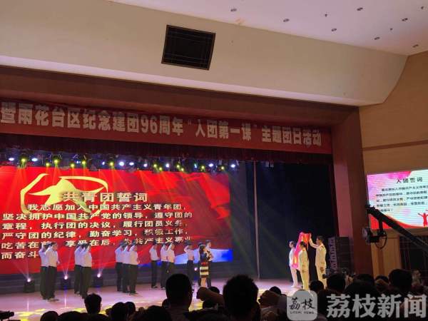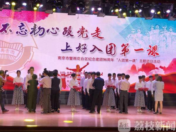 活动现场青年党员、基层团干代表为349名新团员佩戴团徽,发放团员证、团章,并一起重温入团誓词。南京团市委副书记王慧对新团员们成长为一名合格的共青团员提出了四个方面的要求:一是团员要树立共产主义远大理想;二是团员要培育和践行社会主义核心价值观;三是团员要遵守法律、制度和纪律;四是团员要团结带领身边青年一起成长。希望带上团徽的新团员们将今天作为新的起点,勇做走在时代前列的奋进者、开拓者、奉献者,为实现“两个一百年”目标,为实现中华民族伟大复兴的中国梦贡献青春、智慧和力量。
