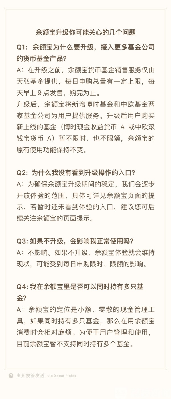 用户最关心的莫过于余额宝功能是否发生了改变?