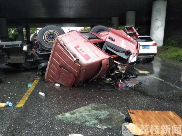 今天(5月6日)凌晨,宁洛高速南京江北长城段发生一起重大交通事故。一辆大型平板货车行驶至宁洛高速与葛新路天桥处,撞坏几十米高速隔离带,掉到桥下面葛新路上面,造成交通严重拥堵。