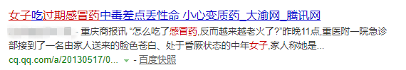 近日,一名重庆女子吃了过期感冒药中毒差点丢掉性命,家人称是吃了感冒药感觉难受,医生检查感冒药包装,发现已过期半年。。。