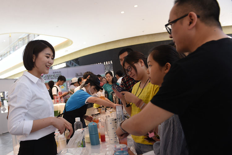 ▲天气炎热,主办方准备的健康饮品受到欢迎