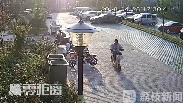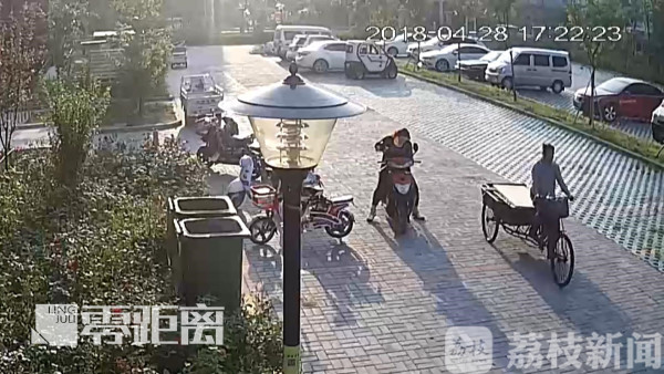 监控显示,一名男子送完货后骑着三轮车准备离开,很快他又返回到现场。民警调看监控发现,嫌疑人离开之后,换了一身长袖的衣服再次来到现场。他环顾四周寻找合适的机会下手,因为电瓶车钥匙没拔,嫌疑人很顺利的把车子骑走逃离现场。