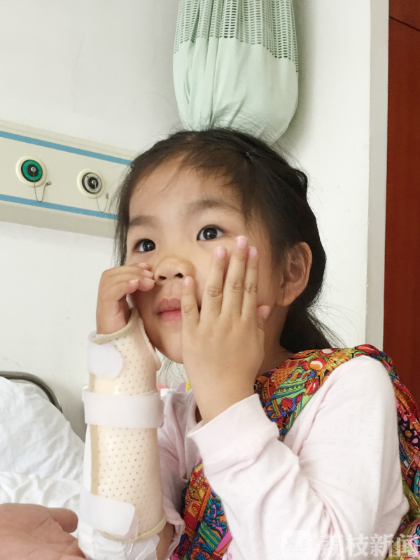 小欣然身患先天性尺桡骨融合,右手臂不能旋转,右手掌心只能朝后,吃饭只能用勺子而不能用筷子,写字也是用食指和中指夹住笔艰难书写,生活质量受到了严重影响。小欣然一直有个愿望,就是期待医生能治好她的病,能让她的右手也像别的小朋友一样能摸到自己的小脸蛋。