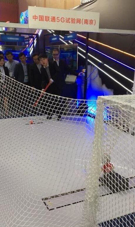 “未来之城”的主题展上,江苏联通展示智能机器人冰球的5G创新应用