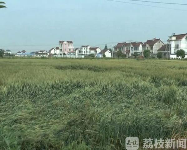 17日早上,记者看到受灾镇区部分田块小麦倒伏,水泥路上散落着被大风刮断的树枝,秧苗床地薄膜被大风吹翻,西瓜大棚的薄膜被冰雹砸坏。