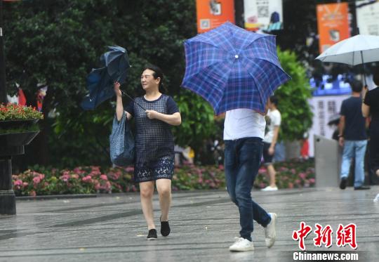 图为市民手中的雨伞被风吹翻。 陈超 摄