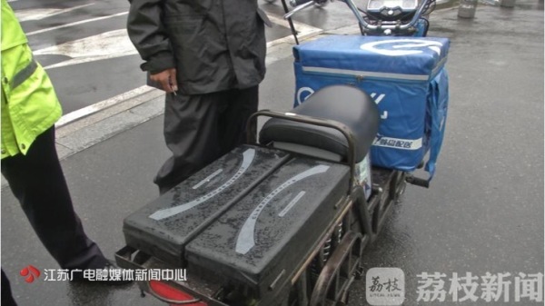 在查处的车辆中,外卖送餐车占比不小。一位外卖小哥,车上就没有悬挂号牌,他表示车辆刚买不久,还在上牌中。