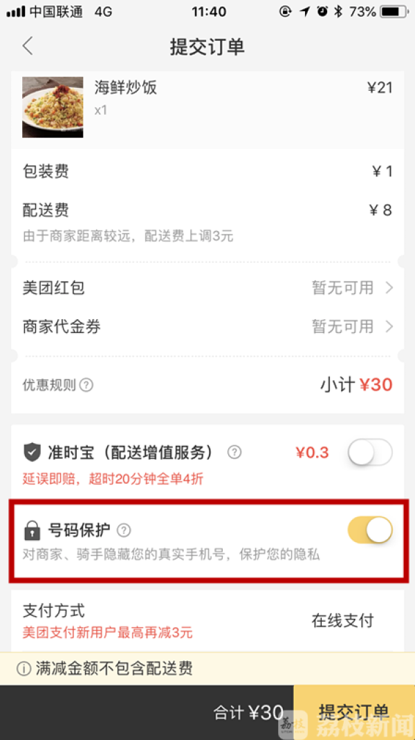 记者从美团外卖、饿了么两家外卖平台的订餐页面上看到,启动信息保护后,下单时系统会自动开启“匿名购买”的选项。骑手、商家都无法获知用户的真实电话号码,相当于为用户构建了一道“安全隔离墙”。