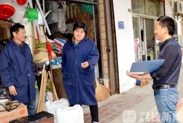 在常州金坛区鑫城大道沿线汇集了五六十户小型商铺,每户商铺门口环境整洁,放眼望去100多米的道路上没有一个垃圾桶,商户每天产生的生活垃圾去哪了呢?远处,一辆载着垃圾桶往返穿梭于商铺间的巡回保洁收集车,一边跑,一边播着“垃圾收集,请您配合,共同维护城市整洁”,给了我们答案。