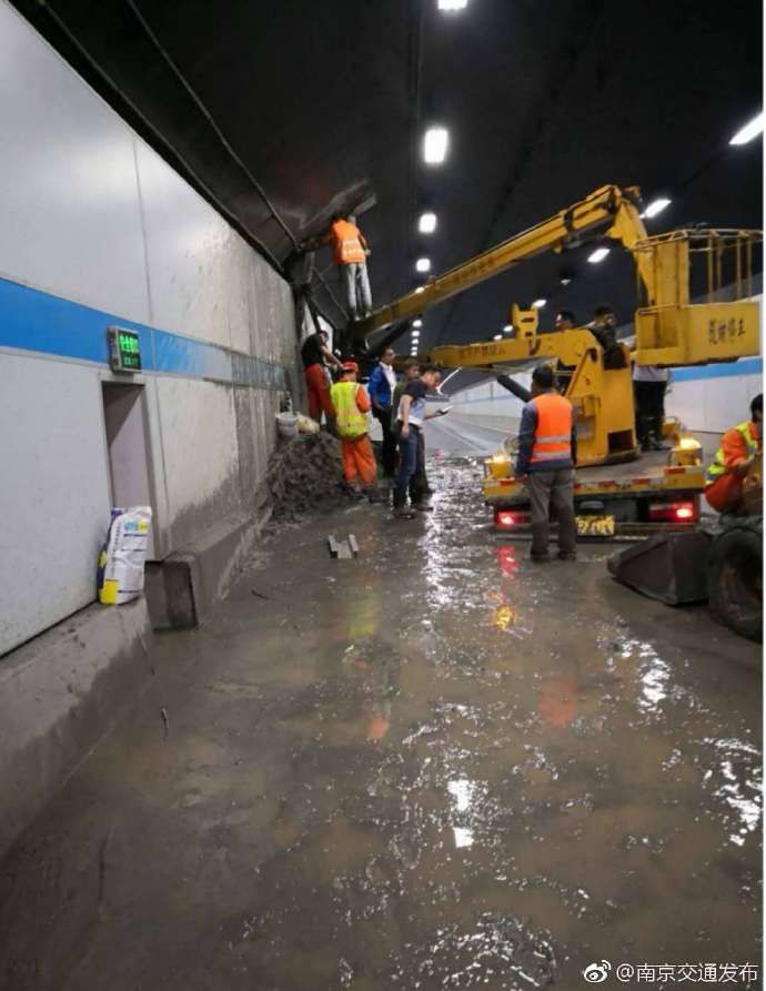 5月24日凌晨1:35,扬子江隧道管养监控中心发现扬子江隧道北线NDK5+835左右隧道左上方出现渗漏,交通集团管养中心第一时间启动应急预案,并进行紧急处置,1:58进行了交通管制。市交通运输局、市交通集团、纬三路建设指挥部等相关单位负责人赶赴现场。凌晨3点左右渗漏得到有效控制,目前交管部门已封闭扬子江隧道北线。