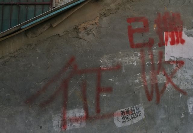南京玄武区青石街附近被征收房屋墙体上的“征收”字样。新华社记者朱筱摄