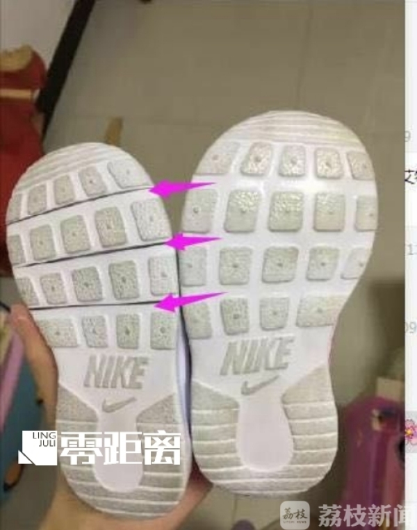 穿的时候女儿走路一只脚踮着走,还有一只脚就是正常的。一开始王女士认为可能是小朋友学走路,闹着玩,也就没在意这个事情。最近,王女士给女儿洗鞋子的时候才发现了问题,原来两只鞋子鞋底竟然不一样,一个有断面,一个没有断面。没有断面那只鞋,大人用手掰都费劲,小孩子穿在脚上,两个脚的弯曲程度都不一样,难怪走路会踮着一只脚。