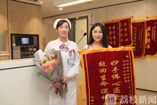 近日,在从越南芽庄飞往南京的国际航班上,突然想起了求援的广播。“有乘客突然昏厥需要帮助,请问飞机上有医护人员吗?”正处于放空状态的江苏省人民医院泌尿外科四病区护士史又文在确认求援广播后,立刻冲了出去,在空乘的带领下来到一位脸色铁青已呈昏迷状态的女孩身边,史又文经过一系列的紧急处理,患者状态逐渐稳定,直至飞机平安降落。昨天上午,被救女孩瑞瑞带着鲜花和锦旗,来到史又文科室,用一个拥抱表达了自己的感激之情。