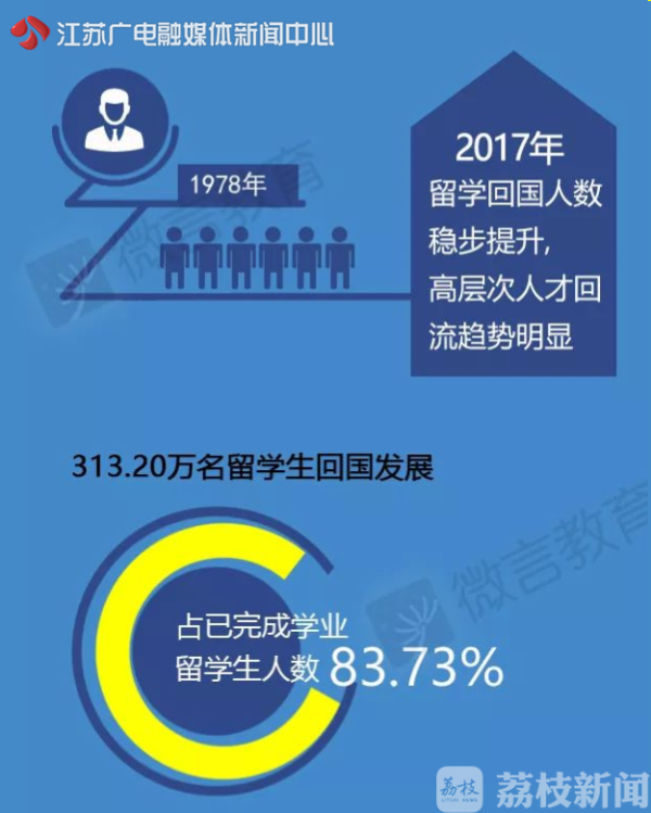 教育部大数据也显示,2017年留学人员回国人数达到48.09万人,也就是说,去年超过八成的出国留学人员,选择了回国。而1978年到2017年底,共计313.2万名留学生选择回国发展,占已完成学业留学生人数的83.73%。越来越优厚的海外人才安家政策、越来越多的回国就业机会,也成为海外学子“归国潮”兴起的原因。