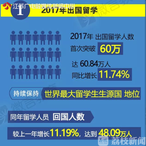 教育部大数据显示,去年一年,中国出国留学人数首次突破60万大关,达到60.84万人,同比增长11.74%,持续保持世界最大留学生生源国地位。