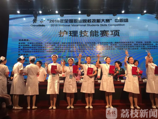 护理赛项的比赛在江苏省南通卫生高等职业技术学校举行,来自全国33支代表队的157名选手参赛,江苏代表队获得2金3银,来自江苏省南通卫生高等职业技术学校的崔慧娴同学获得了一等奖第1名的好成绩。比赛先后进行了临床病例分析理论考试和心肺复苏、静脉输液、置胃管技术、口腔护理技术4项护理技能操作考核。