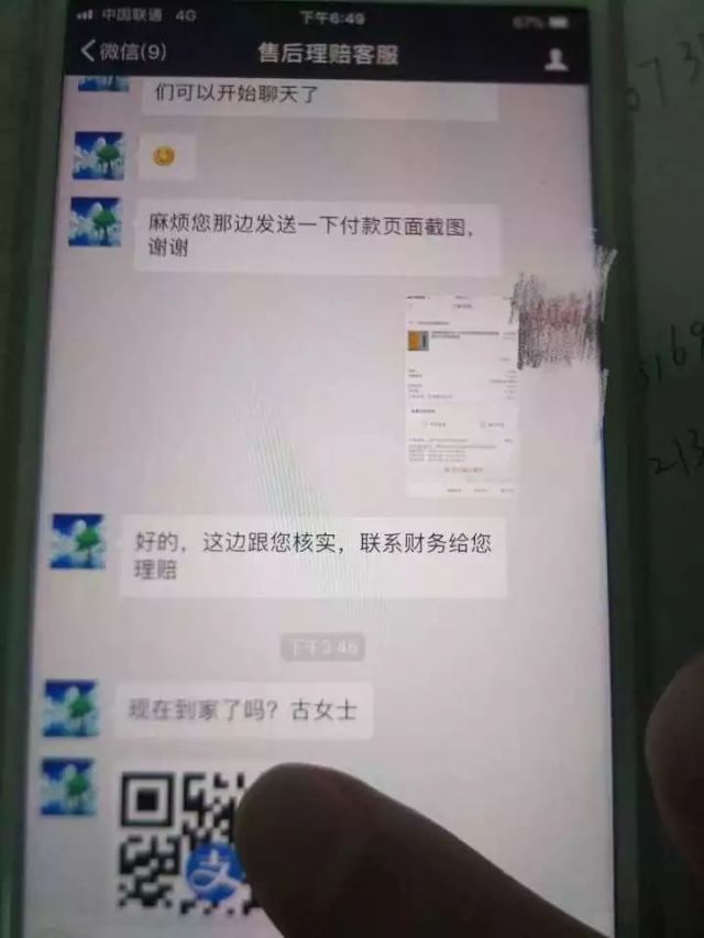 这次打电话来的是一个自称淘宝客服的人,也说快递在运输途中丢失,需要给他进行理赔。于是双方互相加了微信,然后对方就发送了一个支付宝二维码给胡先生。