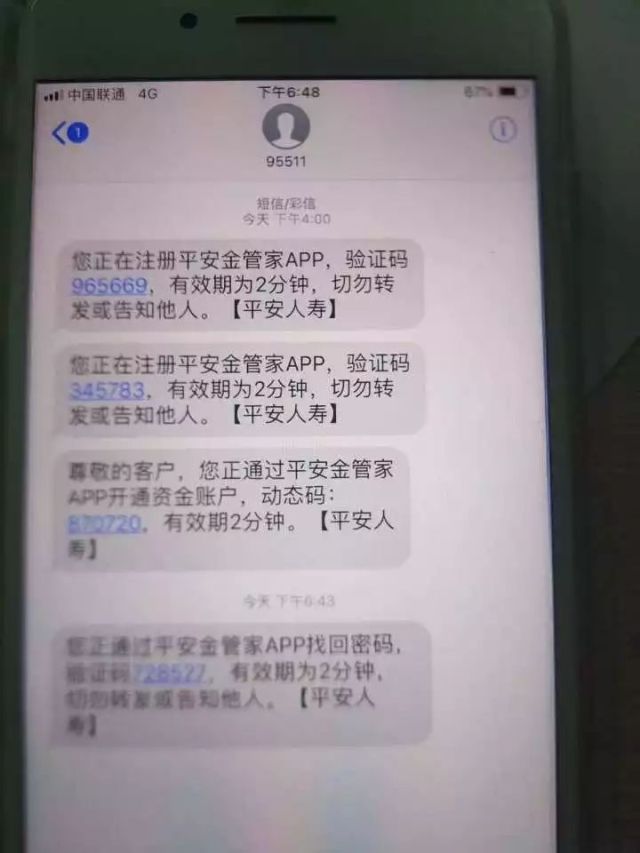 几分钟后,胡先生就收到了一条来自平安金管家的短信,短信里是他注册平安金管家的验证码。