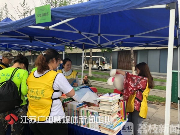 与其他跑步活动不同的是,这次酷跑节现场还设有公益捐赠区,每一名参赛选手带来了书籍、衣服、书包等作为爱心捐赠,赛后将统一捐赠到对口的贫困学校。
