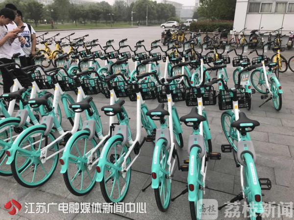 今天(5月27日)上午记者在南京江宁大学城一些高校校园发现,数百辆滴滴共享单车今天刚刚被投放使用。学生们说,这些单车是昨天晚上被几辆厢式货车拉过来的,今天早上激活使用的。这些车辆上挂有标牌:滴滴校园单车,仅限校园骑行。但是经过一天的运行,记者在附近的地铁站已经发现了滴滴共享单车的身影。