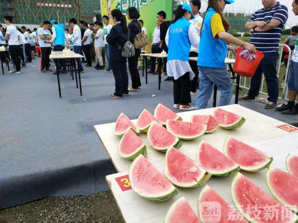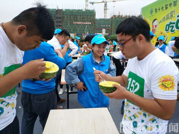 这边瓜王评比竞争激烈,与此同时,一场吃西瓜大赛火热举行。200多人决出“吃瓜至尊”。一片片红瓤的,黄瓤的西瓜引爆参赛者的舌尖。