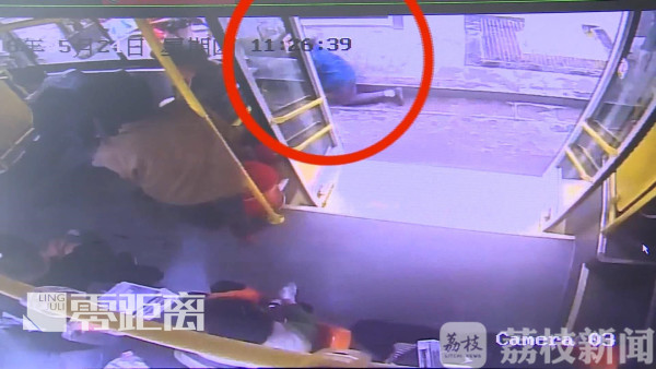 监控画面显示,5月24号中午11点26分,魏星驾驶的70路公交车停靠在市血液中心站。就当乘客有序地上下车时,魏星通过后视镜注意到,一位正在赶车的八旬老人意外摔倒。注意到这个细节后,魏星急忙下车询问老人的情况,与老人同行的一位中年男士说,老人并无大碍,只是雨天路滑崴伤了脚。见同行的男士也上了年纪,魏星做出了一个令在场所有人都十分感动的举动。